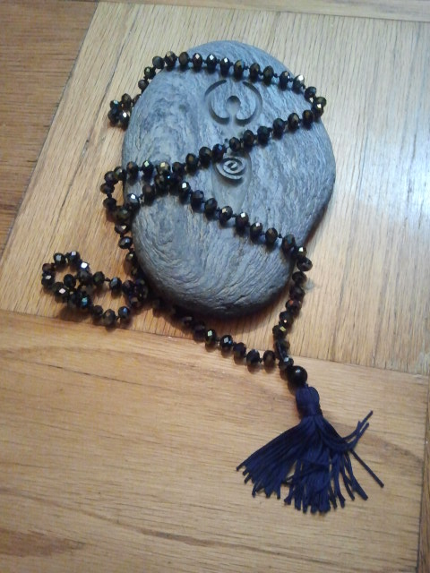 I make malas to order. I feel that when I make your mala it should be a special thing. I breathe life, prayer and intention into each bead so that it is uniquely yours. Today, too many malas are mass-produced and makes me wonder what intention those malas are carrying. When I make your mala it goes from me, straight to you. No one else handles it, so it carries the creation energy in its purest form.